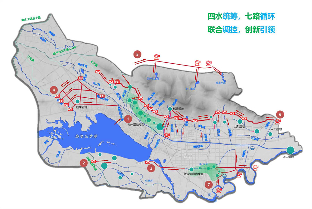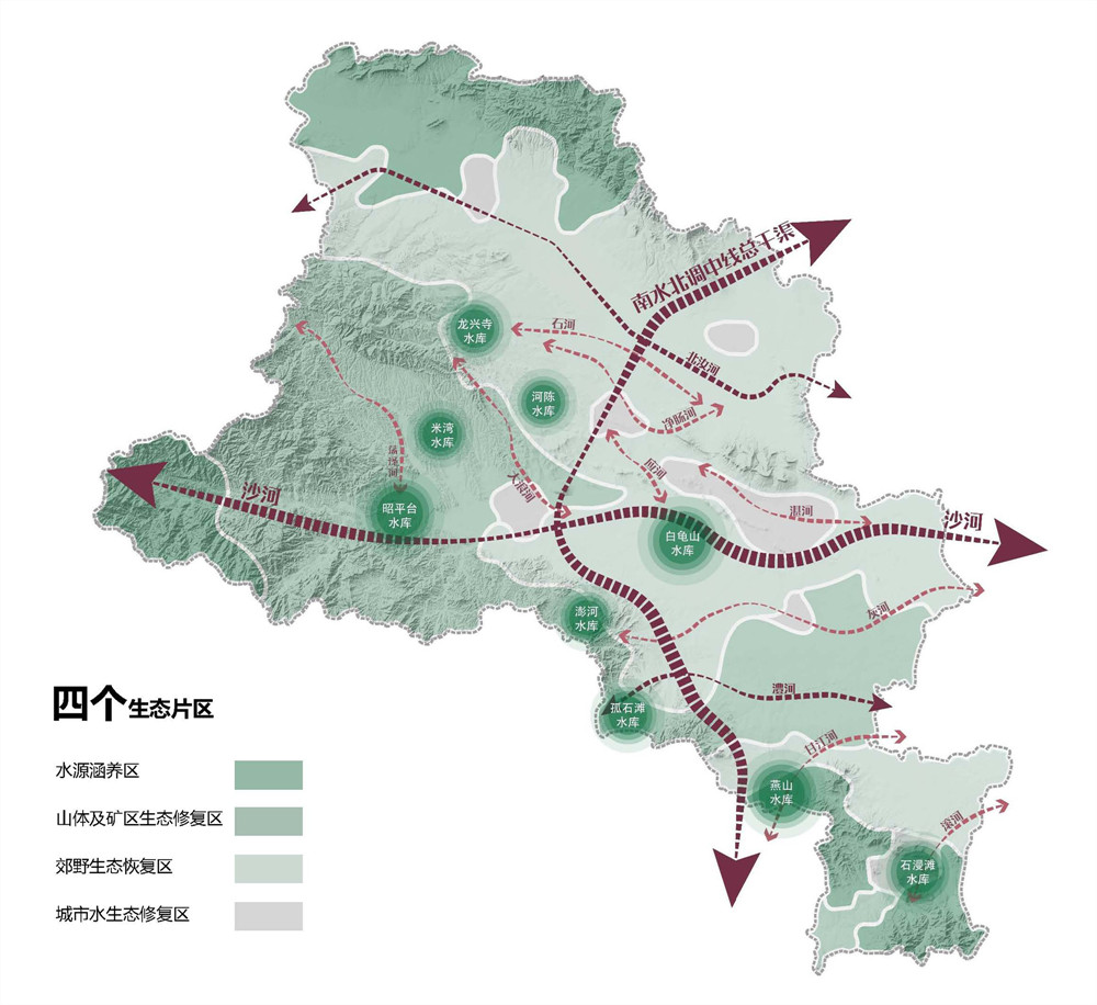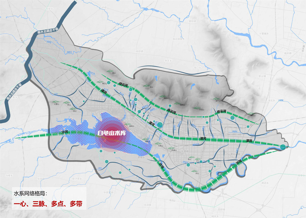 《平頂山市全域循環(huán)生態(tài)水系規(guī)劃》是河南省第一個采用公開競標,確定中標單位的地區(qū)性水利綜合規(guī)劃項目,是引導平頂山市未來水利工作的頂層規(guī)劃,規(guī)劃提出了“四維連通,立體循環(huán)”的生態(tài)水網(wǎng)概念,確定了“一縱四橫九脈連通,三源五湖一網(wǎng)循環(huán)”水系格局。