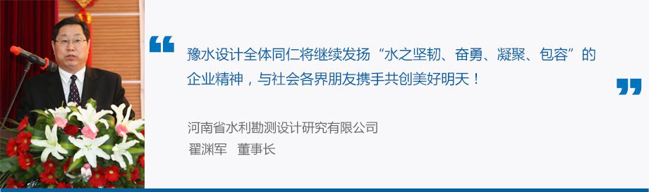 六十年來(lái),從太行山里戰(zhàn)天斗地的紅旗渠,到中原大地星羅棋布的高峽平湖,從龍騰華夏、蜿蜒千里的南水北調(diào)中線(xiàn)長(zhǎng)渠,到萬(wàn)里之遙、百業(yè)待興的非洲大地,處處都有豫水設(shè)計(jì)人的身影。秉承艱苦奮斗的精神和水滴石穿的意志,豫水設(shè)計(jì)人用智慧和汗水打造了品牌,鑄就了水利發(fā)展史上一座又一座豐碑。豫水設(shè)計(jì)的今天,承載了六十年奮斗拼搏的光輝歲月,承載了幾代豫水設(shè)計(jì)人的孜孜追求,也承載了社會(huì)各界的關(guān)心與厚愛(ài)!肩負(fù)厚重的歷史和殷切的期望,新時(shí)期的豫水設(shè)計(jì)正朝著理念先進(jìn)、管理科學(xué)、實(shí)力突出的現(xiàn)代型企業(yè)目標(biāo)而奮勇邁進(jìn)。