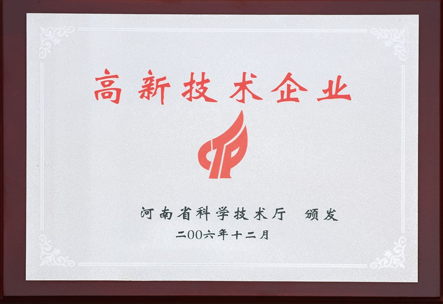 河南省科學技術(shù)廳頒發(fā) 高新技術(shù)企