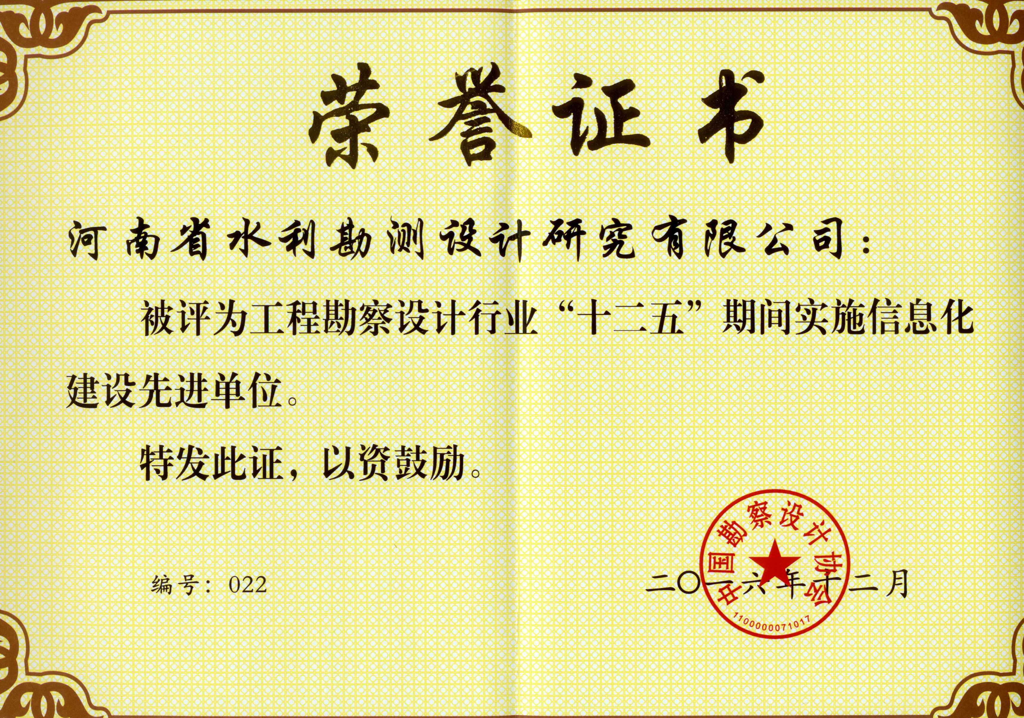 河南省勘察設(shè)計行業(yè)優(yōu)秀企業(yè)