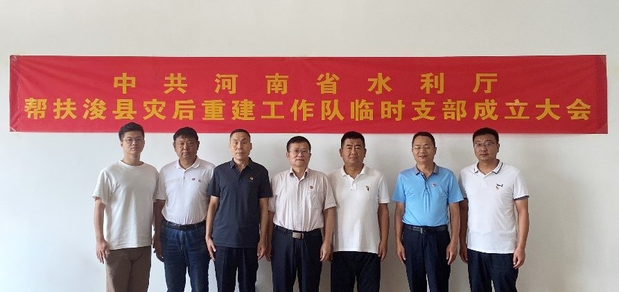 近日,經中共河南省水利廳黨組批準,中共河南省水利廳幫扶浚縣災后重建工作隊臨時黨支部正式成立。該黨支部有正式黨員6名、預備黨員1名,省水利廳二級巡視員王家永同志任黨支部書記,河南省人民勝利渠管理局渠首分局黨委書記余祥海同志任黨支部副書記,支部黨員包括河南省豫北水利工程管理局副局長楊長明同志、總工程師趙維嶺同志、科長張千鎰同志(預備黨員),河南省人民勝利渠管理局執法大隊大隊長崔恩貴同志、豫水設計公司工程管理院院長余新溟同志。