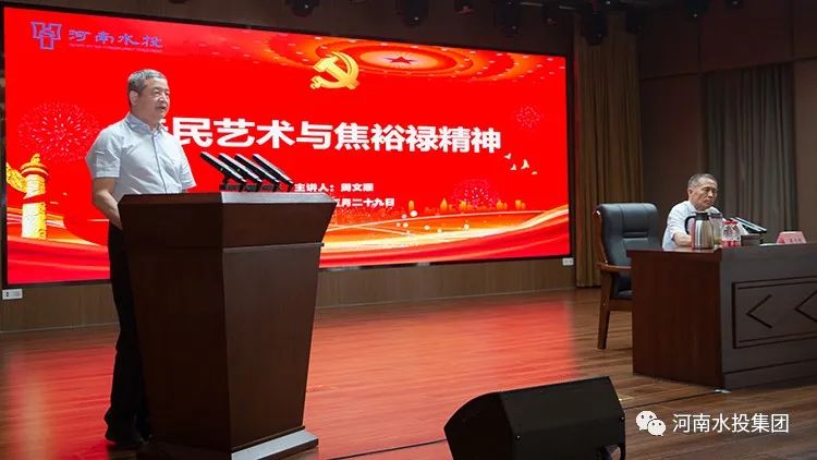 為全面深入推進主題教育走深走實,5月29日上午,河南水投集團舉辦黨委理論中心組集體學習(擴大)專題輔導報告會,特邀中共黨史專家、臺海及國際問題專家、鄭州大學港臺人文研究中心主任周文順教授作專題輔導報告。集團黨委書記、董事長楊繼成主持報告會。省委第三十二巡回指導組組長、省政協人口資源環境委員會副主任張興遼同志,指導組成員、省政府國資委宣傳教育處干部戴曉彬同志到會指導。