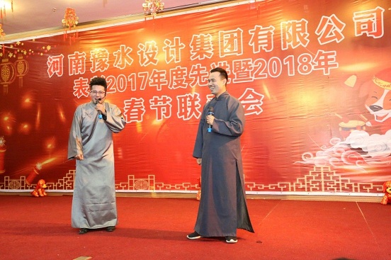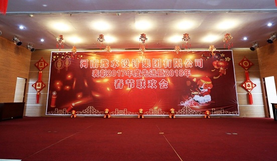 金雞起舞辭舊歲,瑞犬歡騰迎新春。2018年2月11日下午,河南豫水設計集團有限公司表彰2017年度先進暨2018年春節聯歡會在公司三樓大會議室舉行。公司董事會、監事會、經營班子成員,受表彰的先進集體及個人,在鄭員工等350余人歡聚一堂,共迎新春佳節的到來。
