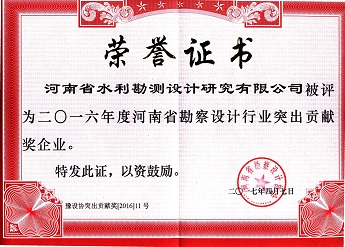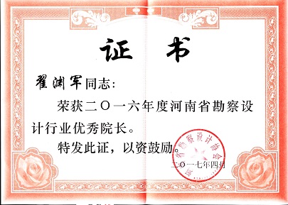為樹立典型,表彰先進,進一步調動河南省全行業勘察設計人員的積極性,促進行業健康發展,河南省勘察設計協會開展行業突出貢獻、行業優秀企業和行業優秀院長的評選。我公司被河南省勘察設計協會評為“2016年度河南省勘察設計行業突出貢獻獎企業”,翟淵軍董事長再次榮獲“2016年度河南省勘察設計行業優秀院長”。