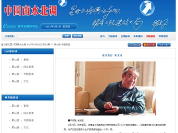 3月1日,《中國南水北調》報及其網頁版(epaper.nsbd.cn)均刊發了采訪我公司總經理朱總的專題報道《設計先行朱太山》。