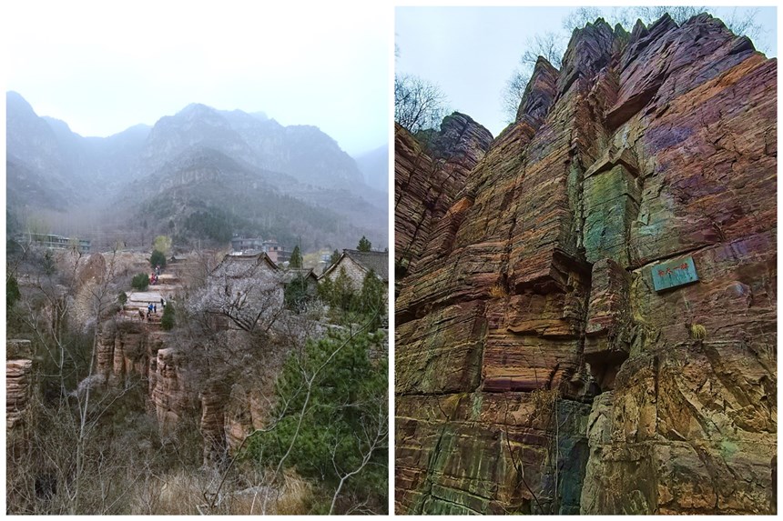五龍峽兩側是高入云端、峻峭的紅崖,谷底是碧綠的池水,一處“飛虹橋”橫在水面上,別有一番景致。進入谷底深處,前方一座直上直下的山峰“南天一注”屹立在谷底盡頭。大家沿著山體一側的“云梯”攀升,經過“定海神針”、“小南海”、“系情谷”等景點,一直來到紅色娘子水庫大壩處,最終到達山頂平臺。