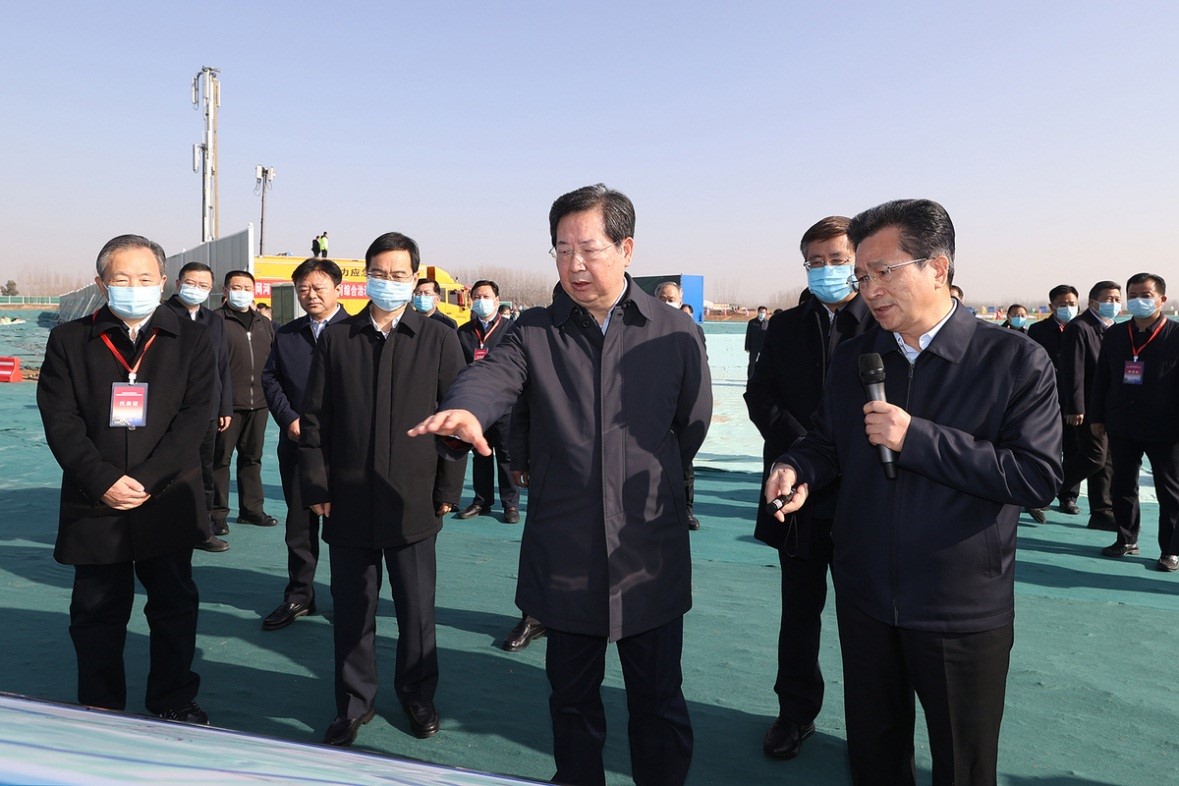 在開(kāi)封主會(huì)場(chǎng),省委書(shū)記樓陽(yáng)生宣布:全省重點(diǎn)水利項(xiàng)目暨賈魯河綜合治理工程開(kāi)工。省長(zhǎng)王凱出席并講話。王凱指出,這次集中開(kāi)工是深入學(xué)習(xí)黨的十九屆六中全會(huì)精神,落實(shí)黃河流域生態(tài)保護(hù)和高質(zhì)量發(fā)展戰(zhàn)略、推進(jìn)南水北調(diào)后續(xù)工程高質(zhì)量發(fā)展的重大舉措,是全面落實(shí)省第十一次黨代會(huì)部署,緊抓構(gòu)建新發(fā)展格局戰(zhàn)略機(jī)遇,以重大項(xiàng)目建設(shè)推動(dòng)高質(zhì)量發(fā)展的實(shí)際行動(dòng),也是推進(jìn)災(zāi)后恢復(fù)重建,加快補(bǔ)齊防洪短板,提升防災(zāi)減災(zāi)能力的有力抓手。各級(jí)各部門(mén)和參建單位要自覺(jué)站位發(fā)展全局,切實(shí)增強(qiáng)推進(jìn)工程建設(shè)的責(zé)任感、緊迫感,強(qiáng)化統(tǒng)籌調(diào)度,加強(qiáng)服務(wù)保障,爭(zhēng)取項(xiàng)目早日建成投用、造福全省人民,以優(yōu)異成績(jī)迎接黨的二十大勝利召開(kāi)。