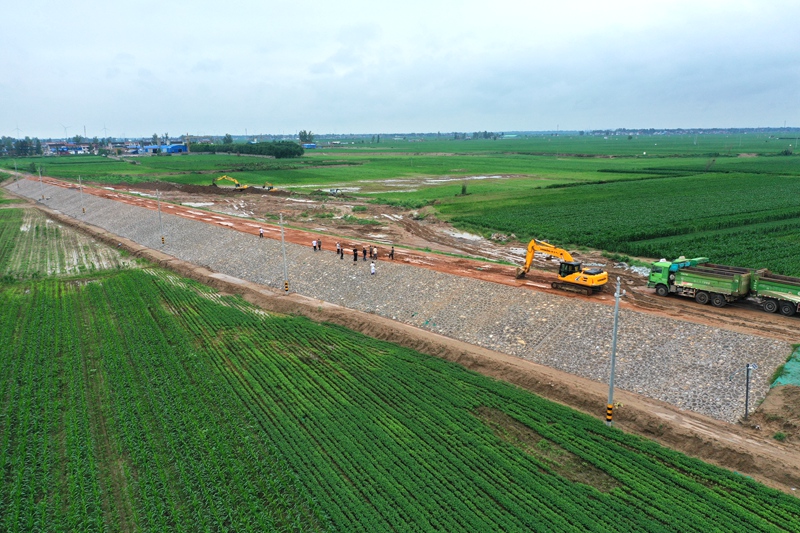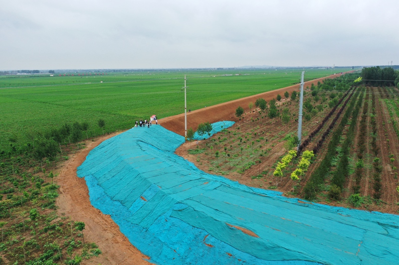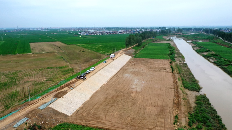 河南??h白寺坡滯洪區(qū)付莊堤縣城段改線工程。彭可攝