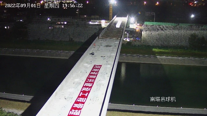 2022年8月31日下午,引熱入安長(zhǎng)輸供熱管網(wǎng)工程跨越南水北調(diào)中線總干渠管道橋,在四套同步、自動(dòng)連續(xù)系統(tǒng)牽引下,歷經(jīng)90分鐘精密施工,完成高空轉(zhuǎn)體90°,實(shí)現(xiàn)了兩座單重8000噸、單長(zhǎng)64米的跨渠管道橋在南水北調(diào)總干渠上空的精準(zhǔn)對(duì)接。
