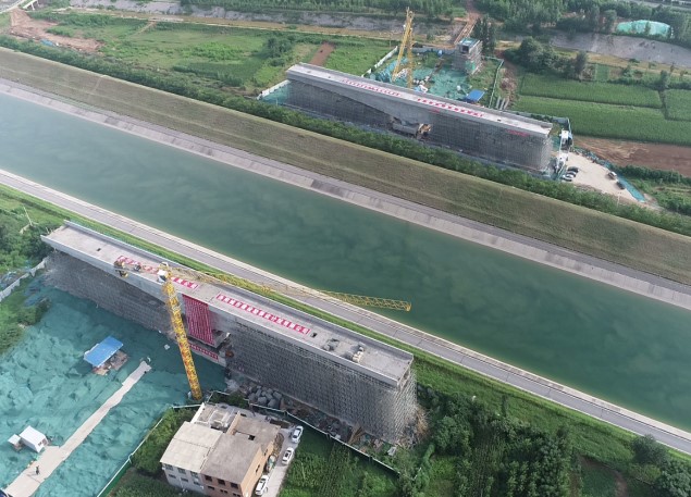 經(jīng)過(guò)項(xiàng)目技術(shù)團(tuán)隊(duì)一系列刻苦攻關(guān),最終確定了在南水北調(diào)中線總干渠上采用連續(xù)梁結(jié)構(gòu)轉(zhuǎn)體施工的技術(shù)方案,有力地保證了總干渠“運(yùn)行安全、工程安全、水質(zhì)安全”和施工安全,大大縮短了工期。