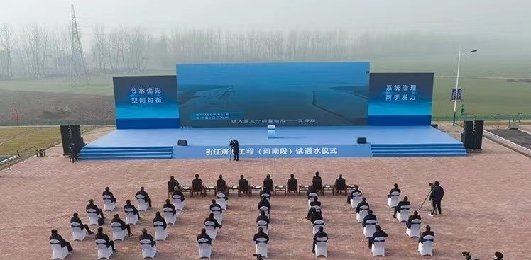 12月30日上午,安徽省人民政府與河南省人民政府聯合舉辦引江濟淮工程試通水、通航暨二期工程開工儀式,本次活動設安徽主會場(合肥市肥西縣)和河南分會場(周口市鄲城縣)。安徽省委書記鄭柵潔出席儀式,河南省省長王凱、水利部副部長劉偉平等出席并講話。