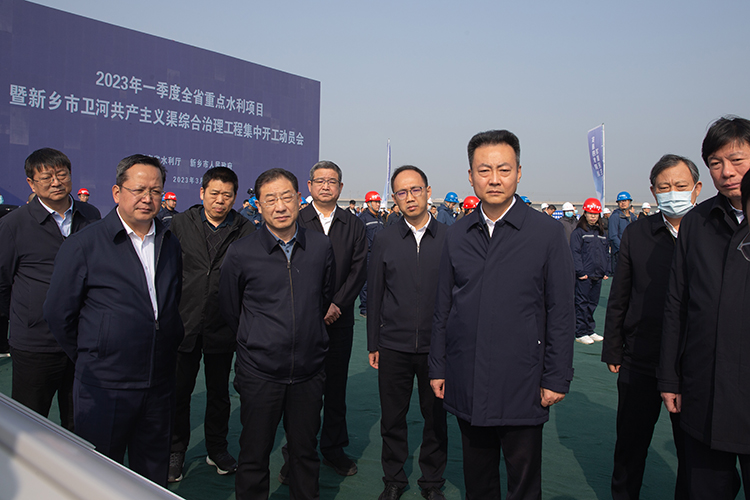 3月21日,2023年一季度全省重點水利項目暨新鄉(xiāng)市衛(wèi)河共產(chǎn)主義渠綜合治理工程開工動員會在新鄉(xiāng)衛(wèi)輝召開。省政府副省長楊青玖出席開工儀式并下達開工令。省水利廳廳長申季維、新鄉(xiāng)市委書記李衛(wèi)東、河南水投集團黨委書記、董事長楊繼成出席,省水利廳副廳長祝云憲主持。