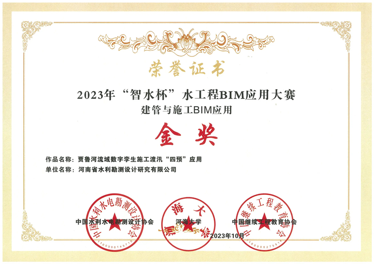 近日,2023年“智水杯”水工程BIM應(yīng)用大賽獲獎項目公示。豫水設(shè)計公司申報項目《賈魯河流域數(shù)字孿生施工度汛“四預(yù)”應(yīng)用》獲建管與施工BIM應(yīng)用金獎;《水工程智慧建造+數(shù)字化運(yùn)維關(guān)鍵場景數(shù)字孿生應(yīng)用》獲全生命期BIM應(yīng)用銀獎。