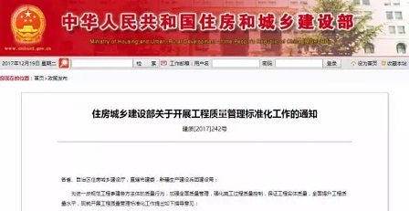近日,住建部下發(fā)《住房城鄉(xiāng)建設(shè)部關(guān)于開展工程質(zhì)量管理標(biāo)準(zhǔn)化工作的通知》(以下簡稱《通知》)。提出到2020年底,要力爭“全面推行工程質(zhì)量管理標(biāo)準(zhǔn)化”。