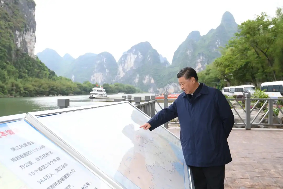 4月25日下午,正在廣西考察調研的習近平總書記來到漓江陽朔段,實地了解漓江流域綜合治理、生態保護等情況。