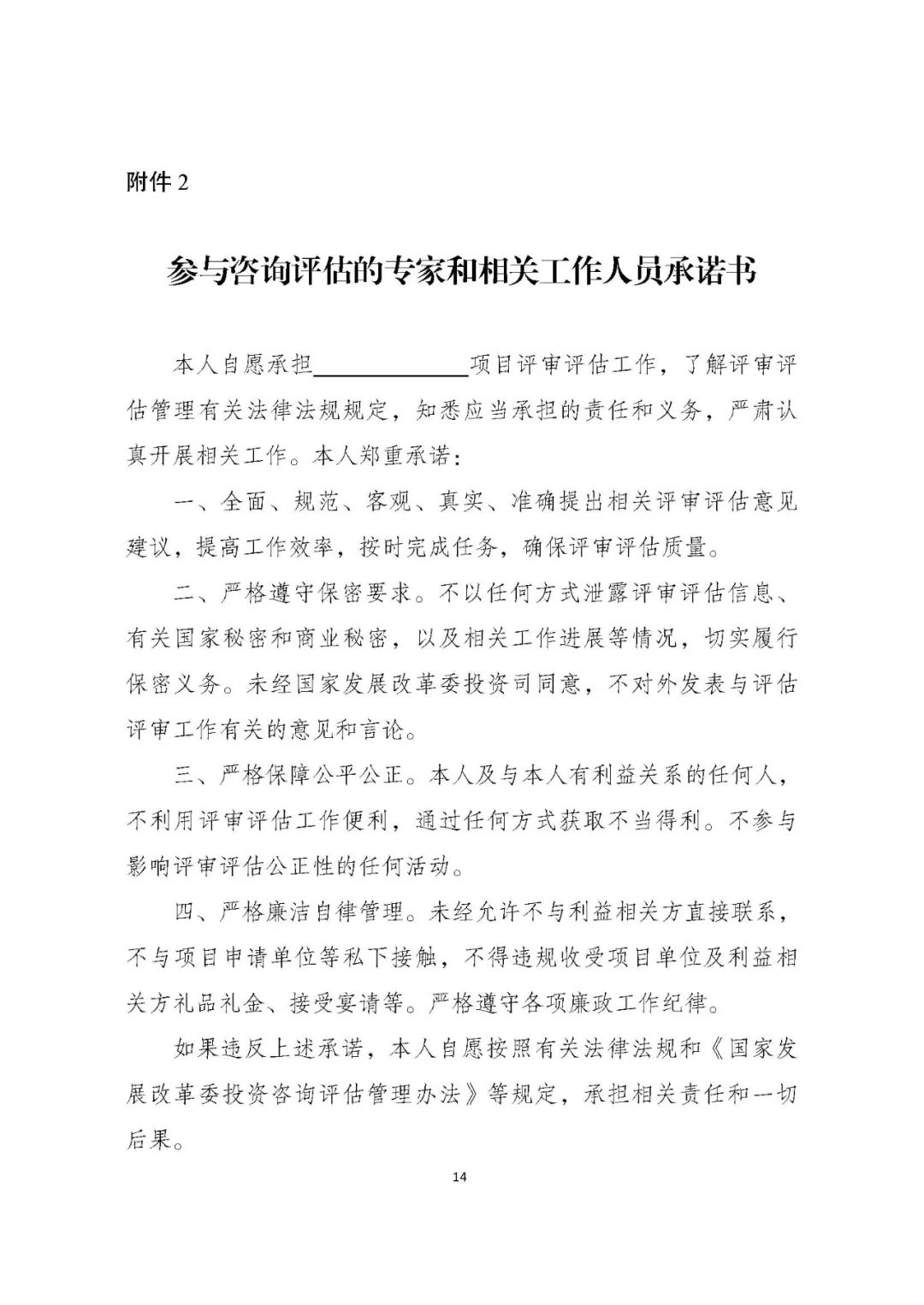 第二條國家發展改革委在進行相關投資決策時,應當堅持“先評估、后決策”原則,委托有關工程咨詢單位開展評審評估,并在充分考慮咨詢評估意見的基礎上作出決策決定。